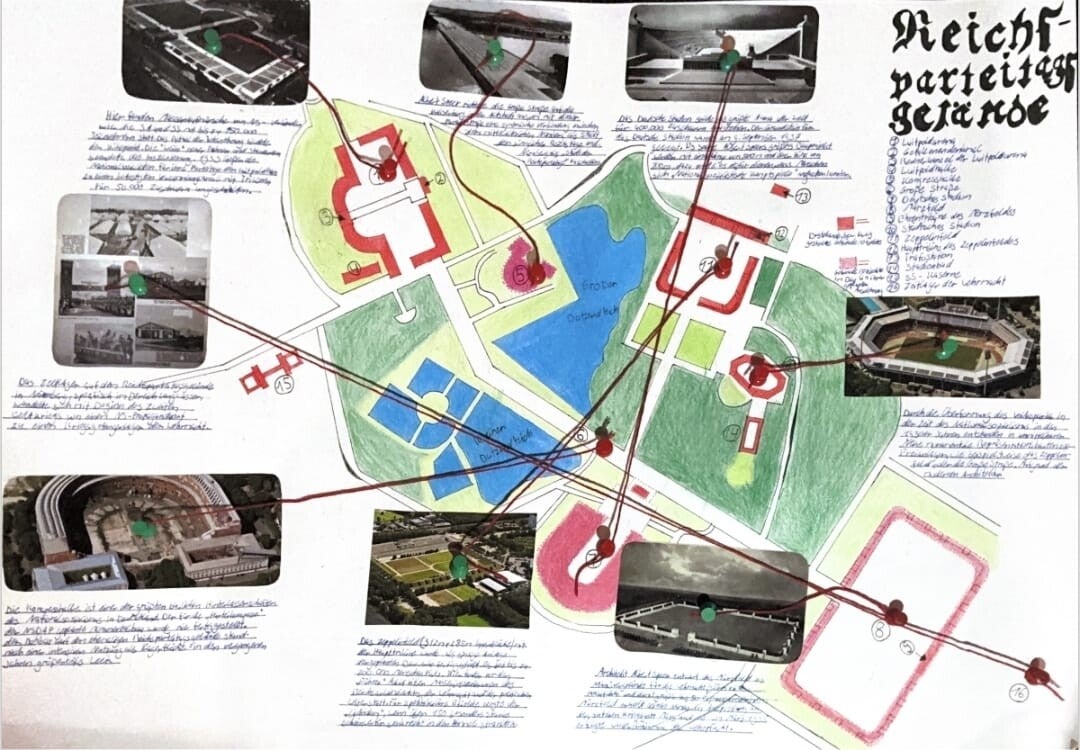 Hier ist das Reichsparteitagsgebäude dargestellt, mit wichtigen Informationen.